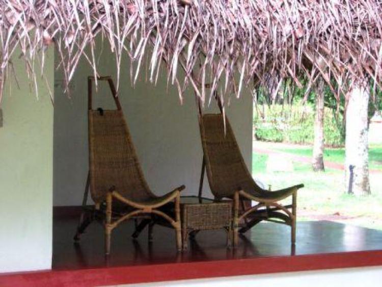 Площадка перед каждым бунгало оборудована плетеной мебелью - два кресла и столик с керосиновой лампой. Этот отель известен своим пляжем, который тянется на несколько сот метров. В отеле очень хороший аюрведический центр.