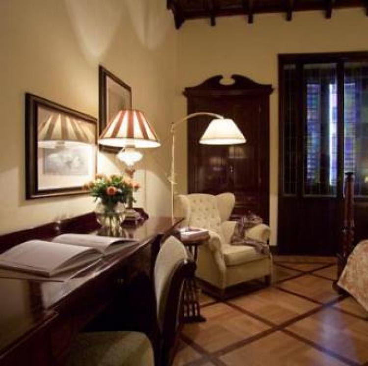Для палаццо, некогда резиденции княжеского семейства Carrega Bertolini, свойственны просторные и торжественно оформленные помещения. В убранстве залов, коридоров и лестниц преобладает отделка из дорогих материалов, ценных пород дерева и светлого камня. В окнах сохранились оригинальные стекла, вставленные в свинцовые рамы. Высокие потолки украшены классическими деревянными перекрытиями. Внутренний интерьер гостиницы украшен многочисленными произведениями искусства: фресками, настенной живописью, статуями. На стенах представлена достойная внимания постоянная выставка эксклюзивных старинных и современных фотографий, на которых отображена история Флоренции за последние сто лет.