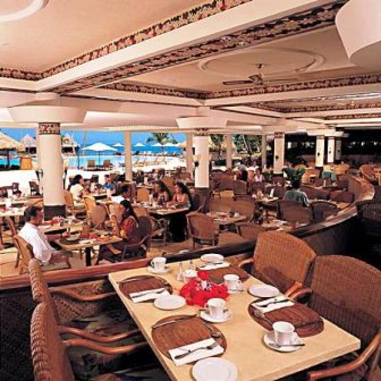 The Tiare restaurant — расположен на первом этаже отеля с видами на бассейн, водопад и на остров Муреа, таитянская и интернациональная кухни.