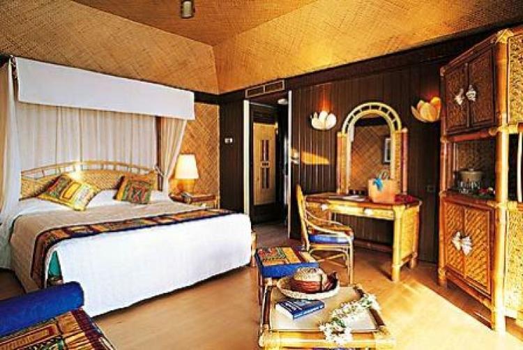 Overwater Motu Bungalow — расположены на сваях в воде на отдельном островке с видом на остров Муреа, оформлены в полинезийском стиле, состоят из спальни с гостиной зоной, ванной комнаты, террасы с зоной отдыха и с прямым спуском в воду.