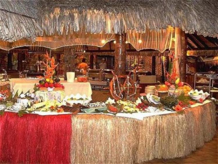 Le Bougainville — ресторан, находится на террасе с видом на лагуну, полинезийская и международная кухня.