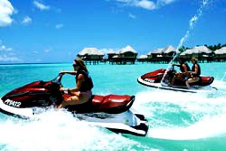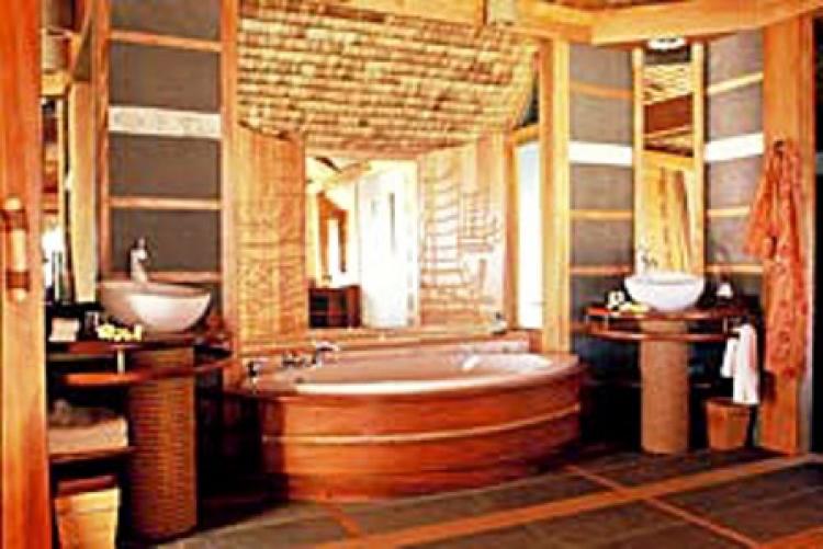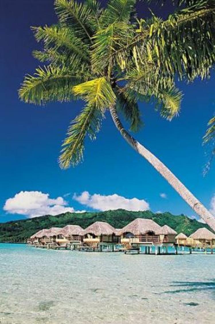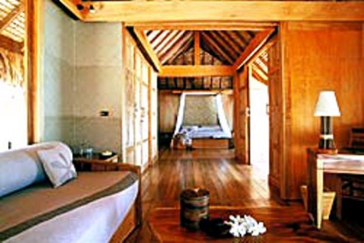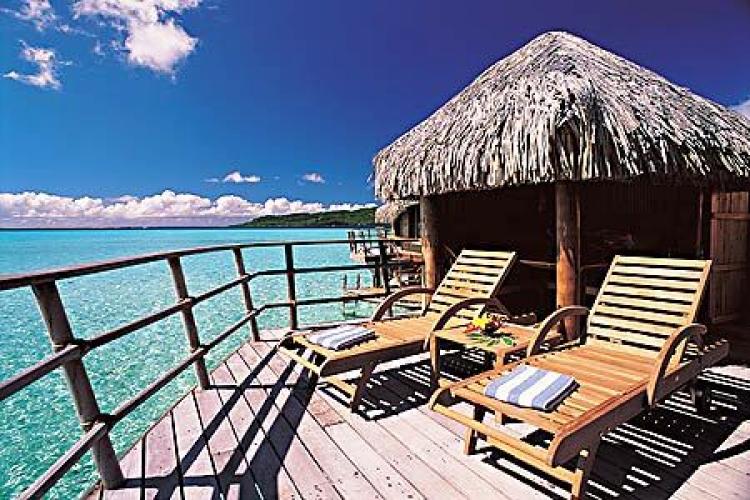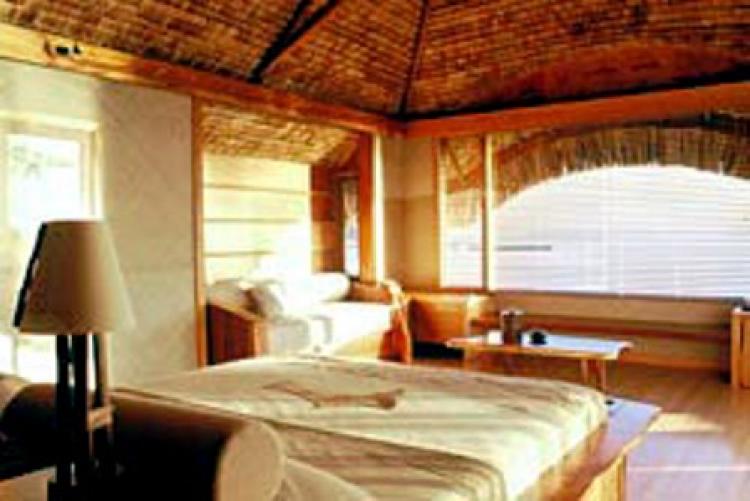 Bora BoraOverwater Bungalow(100 кв. м) — с видом на острова Бора Бора, состоит из гостиной, совмещенной со спальней, ванной комнаты с отдельным туалетом и террасы для загара со спуском в лагуну.