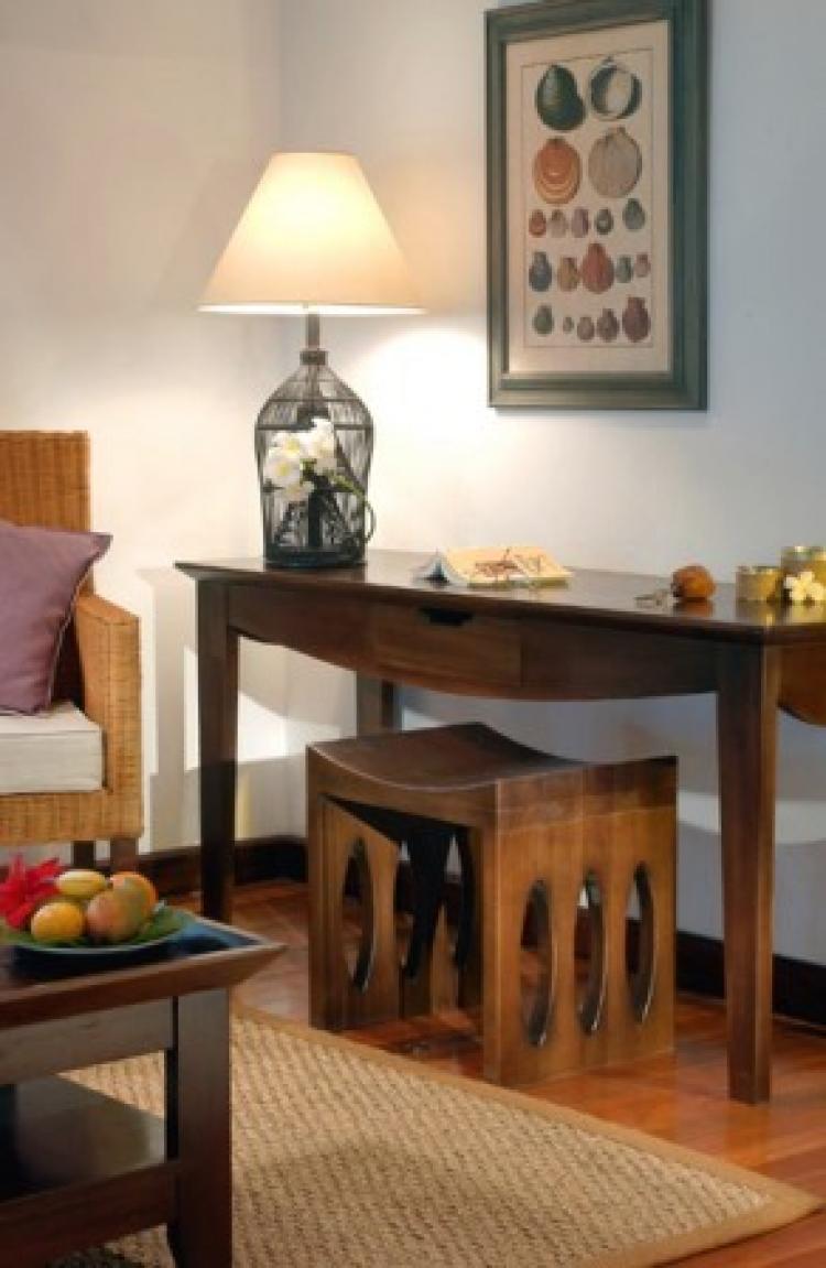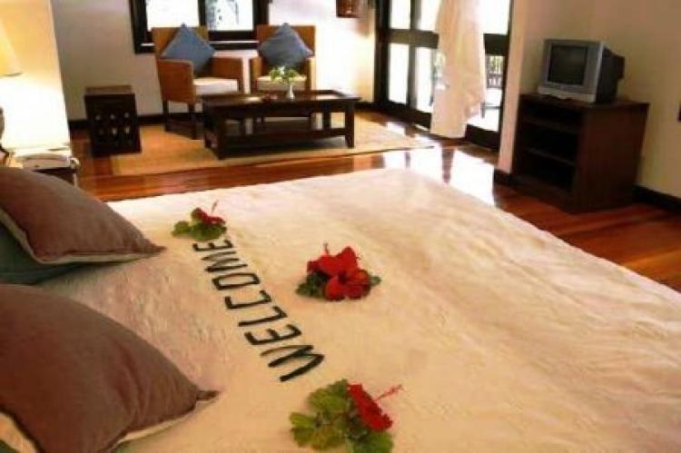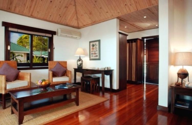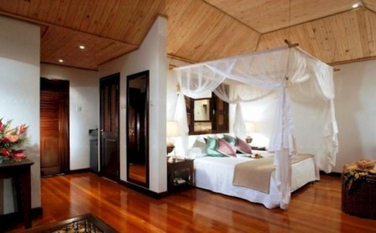 Junior Suite: 52 м2. Расположен в бунгало на западном пляже, в окружении тропической зелени; включает спальню, зону отдыха, ванную комнату с ванной, душ на открытом воздухе, террасу с видом на океан. Максимальное размещение – 3 человека.