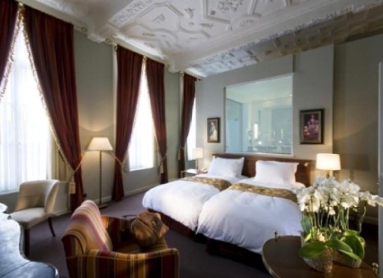 Graaf van Vlaanderen Suite: 52,4 м2. Исторический номер с высокими панорамными окнами, отделан великолепными тканями; состоит из спальни с кроватью king-size и гостиной зоной, ванной комнаты.