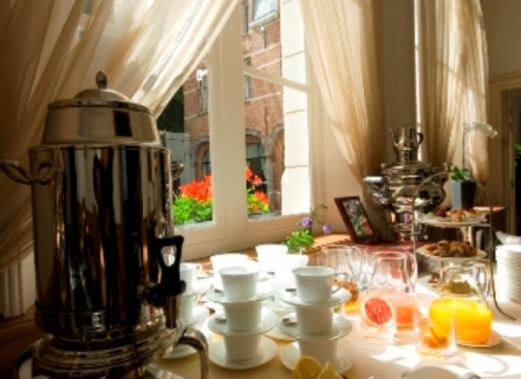 В роскошном историческом зале ресторана Manuscript предлагаются деликатесы бельгийской и европейской кухонь, приготовленные из отборных местных продуктов.