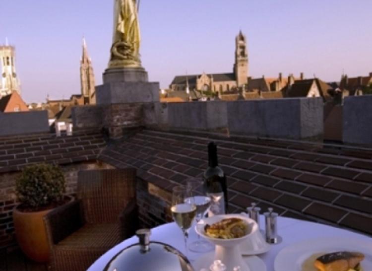 Deluxe Room: 34 м2. Расположен в исторической части здания, имеет высокие потолки; состоит из спальни с кроватью king-size или двумя кроватями twin, письменным столом и уголком для отдыха с креслами и столиком, ванной комнаты выходит на средневековые кварталы Брюгге. Размещение – 2 взрослых.