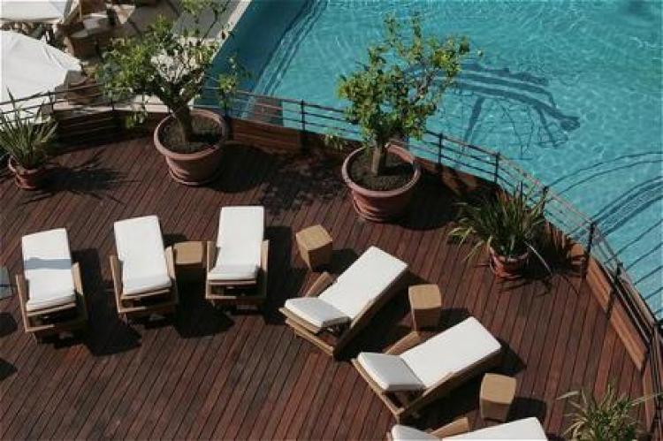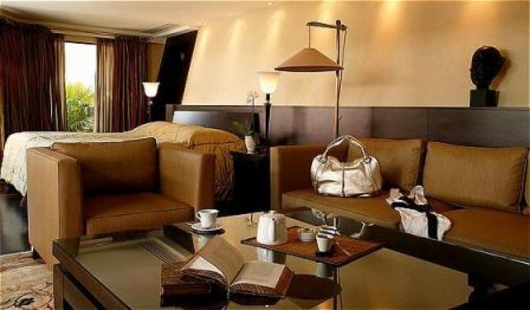 Prestige Suite: 90 м2 (80 м2 – номер и 10 м2 – терраса). Расположен на верхнем этаже отеля, состоит из спальни, гостиной, ванной комнаты, отделанной мрамором и деревом, с гидромассажным душем, террасы с видом на море или парадный вход отеля.