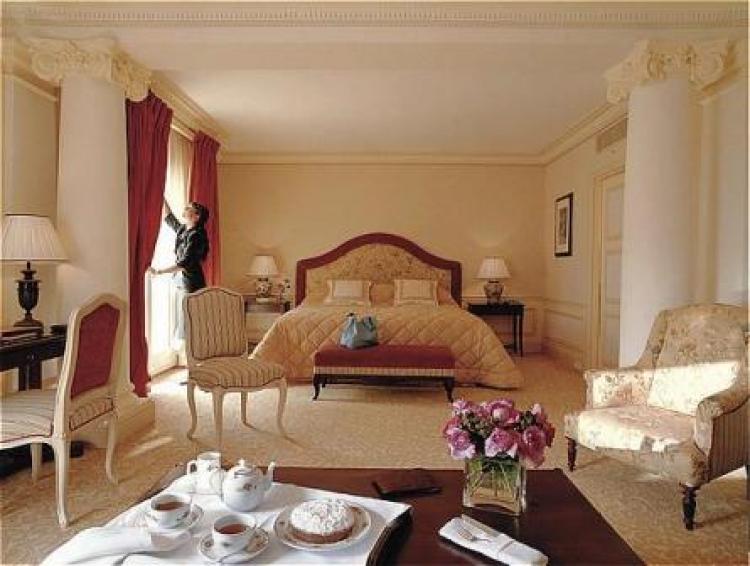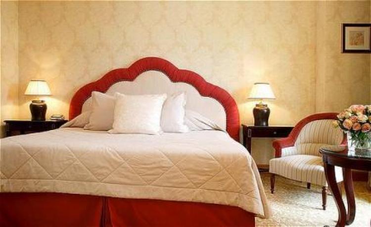 Deluxe Room: 25-30 м2. Расположен на верхних этажах отеля, состоит из спальни с зоной отдыха, ванной комнаты с ванной и душем, выходит на парадный вход отеля, выполненный в тосканском стиле, море или город.