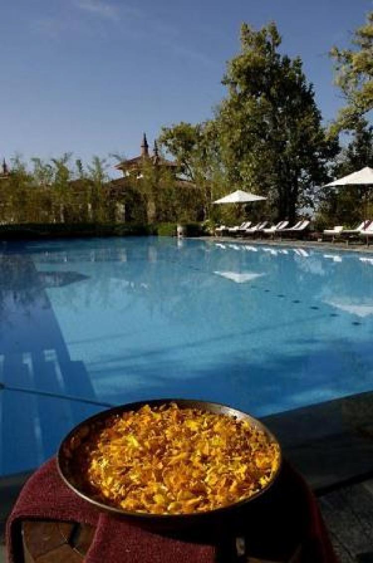 Расположенная на склоне холма, спускающегося в долину, и окруженная лесом с одной стороны и изысканными зданиями курорта с другой, эта терраса у бассейна - непревзойденное место для релаксации. Устройтесь поудобней у лазурного бассейна, в котором отражается синева гималайского неба, возьмите свежевыжатый сок, легкие закуски и наслаждайтесь.