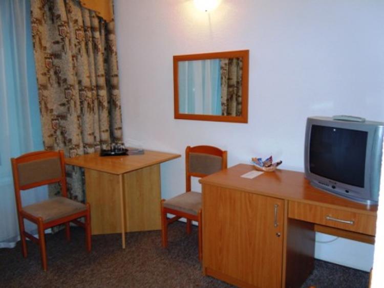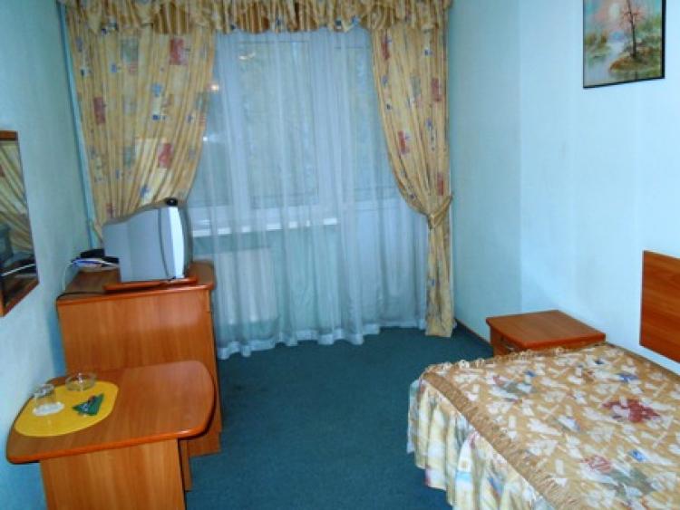 Одноместные номера (24 номера в основном корпусе № 2). Для проживания одного взрослого и одного ребенка. В номере одна односпальная кровать, прикроватная тумбочка, светильник, журнальный столик, тумба с телевизором, кресло, шкаф, мини-бар, телефон, балкон. При входе в номер вешалка для одежды, полка для багажа и обуви. На полу - ковровое покрытие. В ванной комнате - душ, туалетные принадлежности.