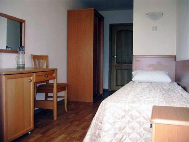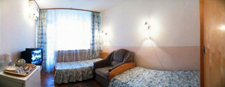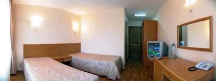 Стандартный 2-местный (12кв.м). В номере прихожая, ТВ, телефон, холодильник, 2 кровати, 2 тумбочки, шкаф, санузел с душевой кабиной (в некоторый номерах есть кресло-кровать (узкое-для детей), балкон.