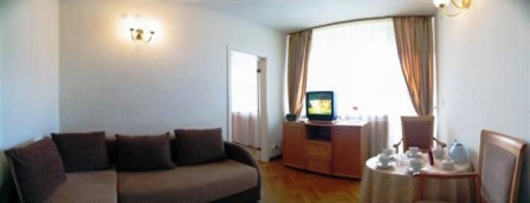2-комнатный 2-х местный (все комнаты, включая с/у — проходные). Прихожая, гостиная с мягкой мебелью, спальня, санузел (душевая кабина,фен, туалетные принадлежности), ТВ, холодильник, телефон, балкон. 3-комнатный Люкс с кондиционером. Оборудованная кухня (посуда, эл.чайник, эл.печь с духовкой, холодильник, обеденный стол на 6 персон), гостиная (мягкая мебель, ТВ, телефон), спальня (двуспальная кровать, тумбочки, шкаф, вешалка для костюма, туалетный столик), из спальни выход в большой санузел (ванная, фен, туалетные принадлежности), гладильная доска, балкон.