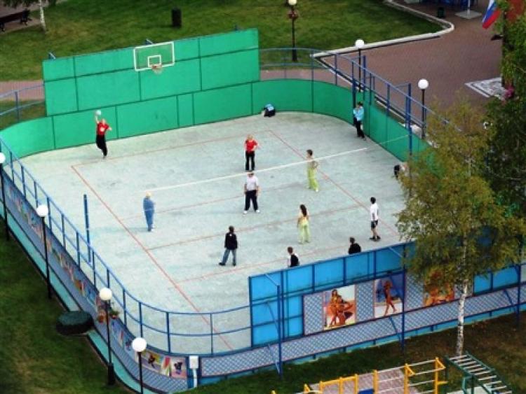 - 2 открытые игровые площадки с ограждением: универсальная и теннисный корт (зимой освещаемые катки);