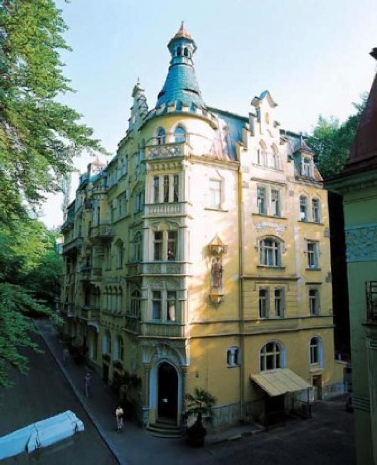 Отель находится на окраине курортной зоны и многих гостей привлекает поистине сказочной атмосферой окружающего леса. Уже его архитектурное решение является своеобразной иллюстрацией к сказке. А депандансы Маргарита, Палладио и Виндсор продолжают это сказочное архитектурное повествование. В непосредственном соседстве с отелем находится Лесной источник с красивой променадой, которая свободно переходит в комплекс геологического парка.