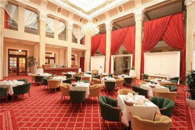 Главный ресторан отеля Grand Restaurant Pupp сочетает изысканный дизайн в стиле неоклассики и великолепные блюда чешской и международной кухни.