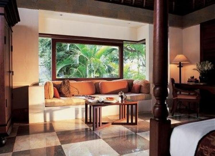 Amanusa Suite — с видом на океан, состоит из спальни с гостиной зоной в эркере, ванной комнаты, душа на свежем воздухе, внутреннего дворика с садом, террасы с собственным бассейном, обеденной зоной и bale – просторным ложе под пологом для дневного отдыха.