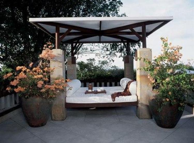 Garden Suite — с видом в сад, состоит из спальни с гостиной зоной в эркере, ванной комнаты, душа на свежем воздухе, внутреннего дворика с садом, террасы с обеденной зоной и bale – просторным ложе под пологом для дневного отдыха.