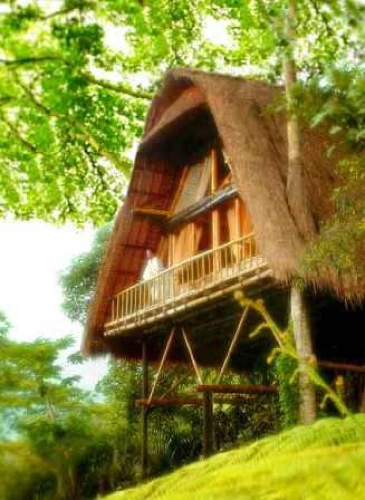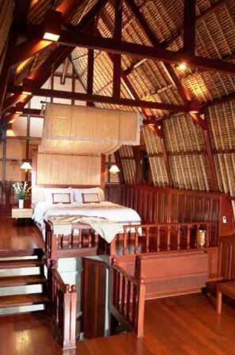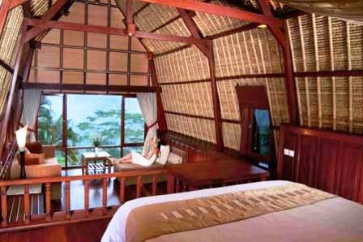 5 Duplex Village Villa (90кв м) – номера в двухэтажных бунгало из экзотического красного дерева с соломенной крышей с балконом и террасой с видом на бассейн и горную речку Аюнг (макс.2 взр + 2 реб. или 3 взр.),